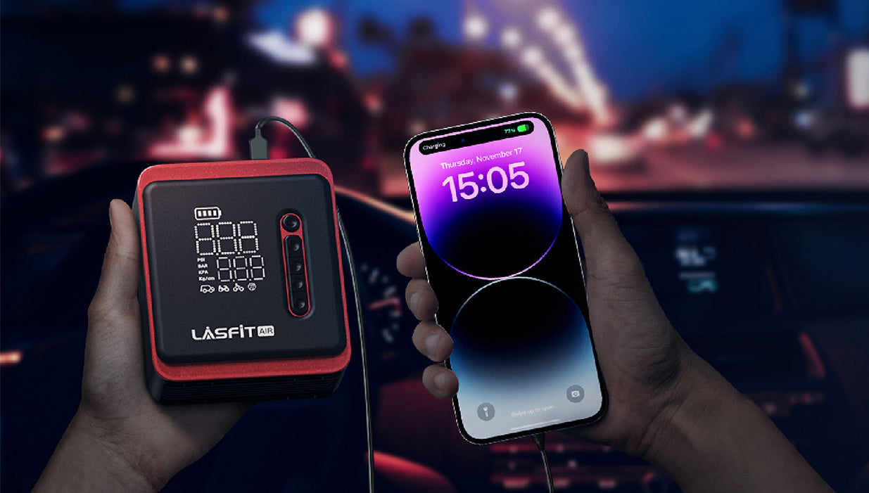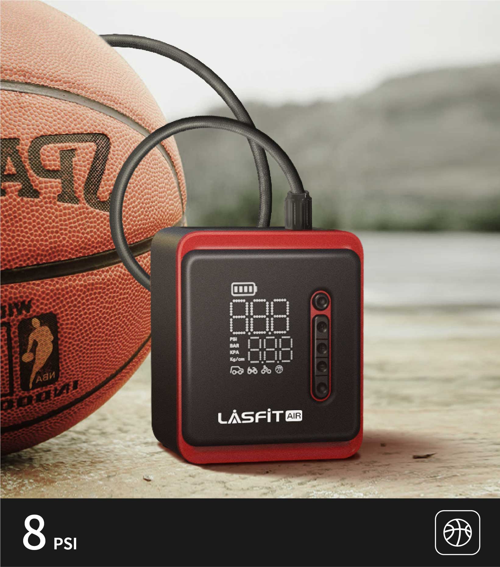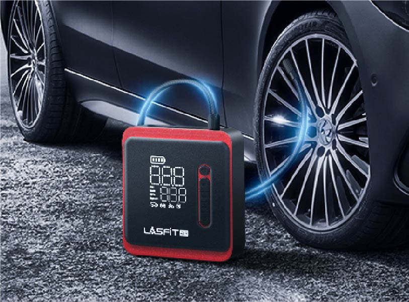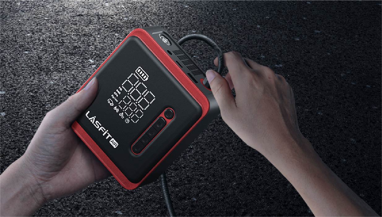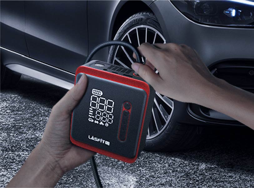 - 【Smart Air Pump, Easy to Use】LASFIT AIR CR1 auto tire inflator comes with LED real time digital pressure gauge screen, easy for accurate readings. You just need to choose the modes(car, bike, motorcycle, ball, customized modes) with your desired preset pressure, connect the tires with hoses, then press the power button to start inflating your tires. This tire inflator portable air compressor will auto shutoff when the desired PSI is met.