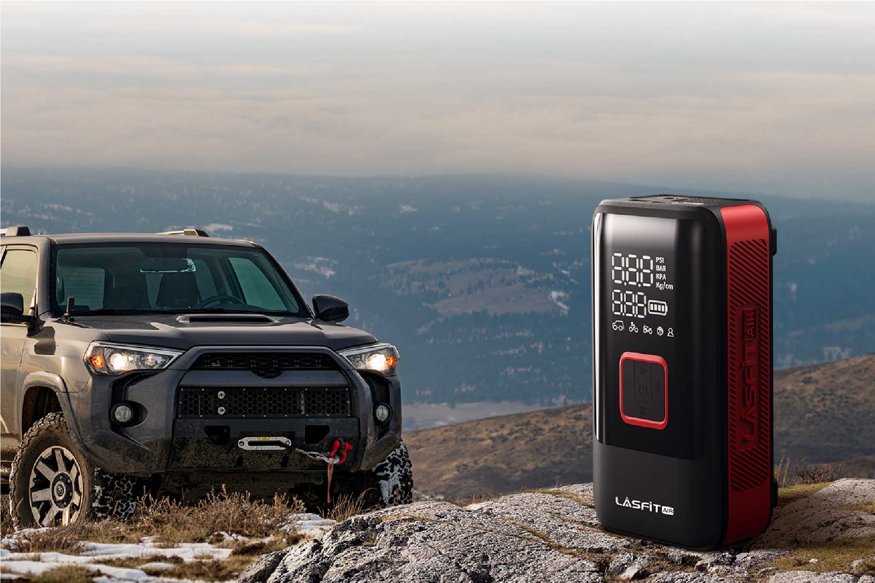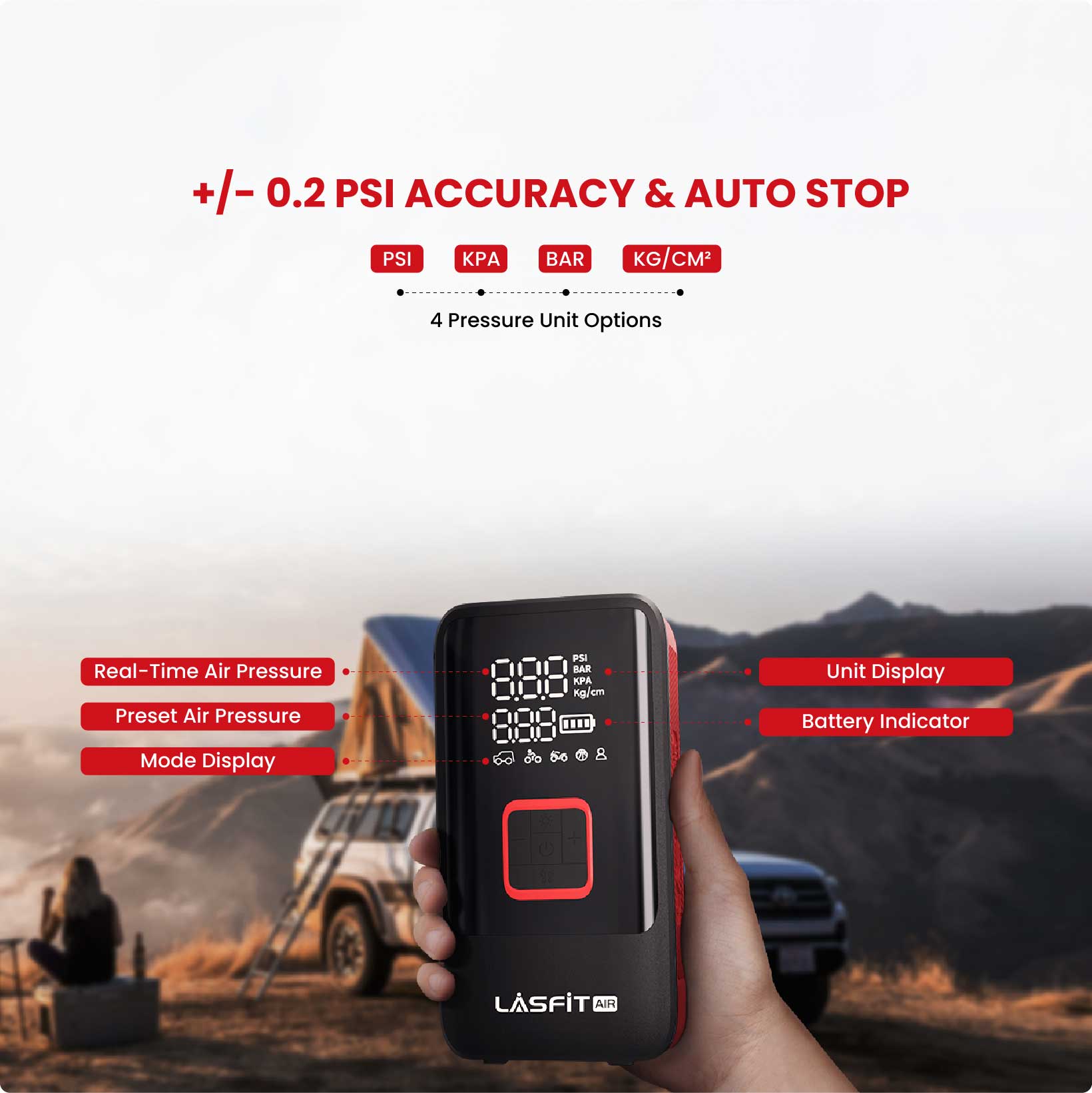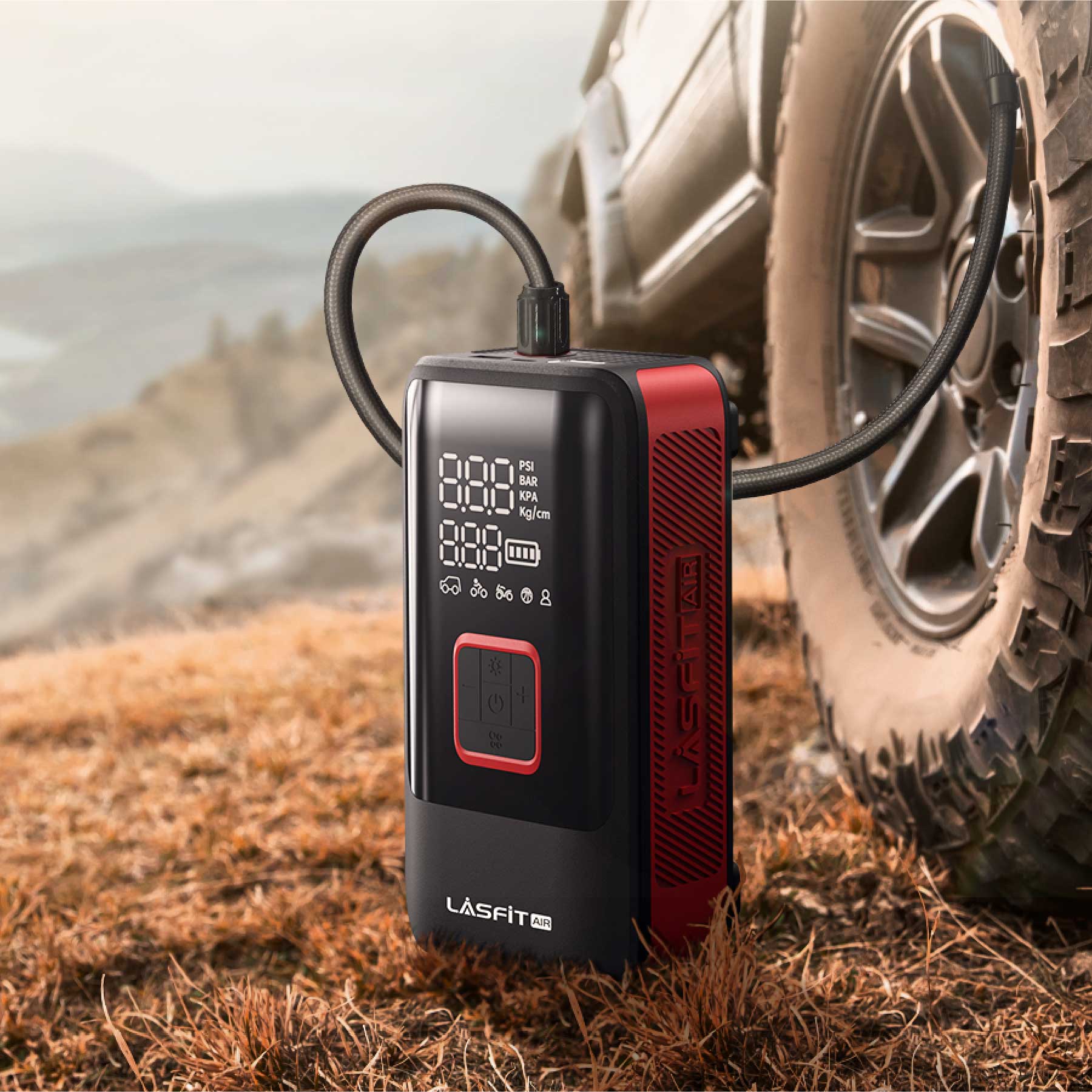 LASFIT AIR TK1 Tire Inflator, Portable Air Compressor Pump for Pickup & SUV /w Digital Pressure Gauge, Auto Stop, 150PSI, 12000mAh Battery